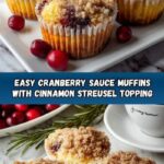 Delightful leftover cranberry sauce coffee cake muffins that combine the tartness of cranberry sauce with a soft, moist muffin base and a crunchy cinnamon streusel topping. Perfect for a cozy breakfast or an afternoon snack, these muffins make great use of leftover cranberry sauce and offer a delightful balance of flavors and textures.