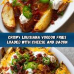 Louisiana Voodoo Fries are crispy homemade French fries seasoned with Creole spices and topped with melted cheddar cheese, crispy bacon, tangy pickled jalapeños, fresh green onions, and a drizzle of creamy ranch dressing. This flavorful snack captures the spirit of Louisiana with a spicy, cheesy, and savory twist, perfect for sharing or enjoying as a hearty appetizer.