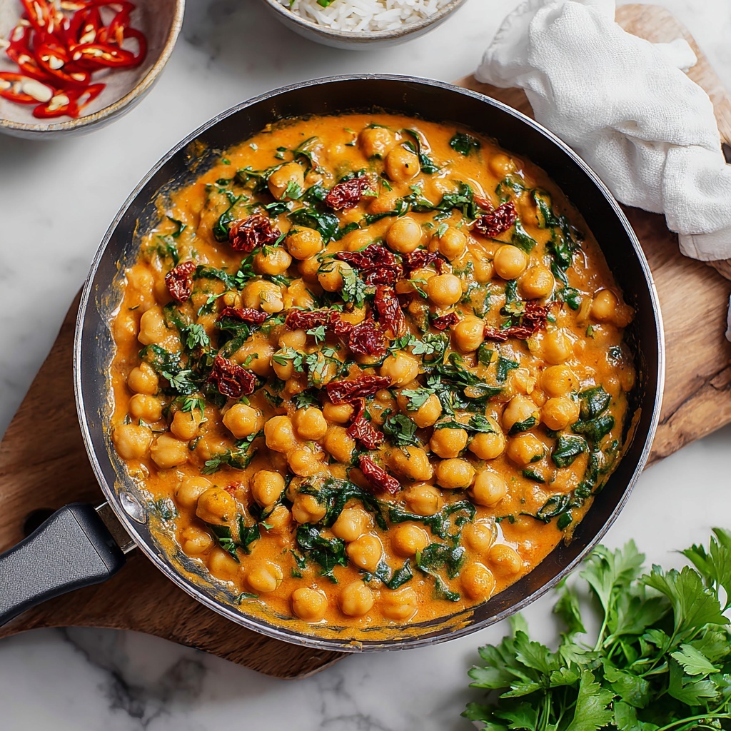 Finishing your Marry Me Chickpeas Recipe with a scattering of fresh cilantro or parsley instantly lifts the entire dish, adding a vibrant green contrast and a burst of herbal freshness. The garnish not only makes the plate pop visually but also adds a clean, bright note that complements the rich coconut and spice blend perfectly.
