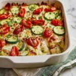 This Mediterranean Chicken Zucchini Bake is a flavorful and nutritious one-dish meal featuring tender chicken pieces, fresh zucchini, cherry tomatoes, and aromatic herbs baked to perfection with melted mozzarella and Parmesan cheese. It’s a quick and easy recipe perfect for a wholesome weeknight dinner.