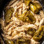 • 12 pepperoncini peppers + 1/4 cup juice from the jar: Adds a subtle spicy tanginess and tenderizes the chicken as it cooks.