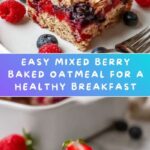 Remove the oatmeal from the oven and give it about 5 minutes to cool slightly. This rest helps the baked oatmeal firm up and makes it easier to cut and serve. If you like, drizzle with an extra touch of maple syrup or a splash of milk to take your comforting Mixed Berry Baked Oatmeal Recipe to the next level.