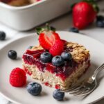 You’ll want the center to be set and no longer jiggly when gently shaken. The edges should be lightly golden, signaling that your Mixed Berry Baked Oatmeal Recipe is perfectly baked.