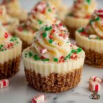 These No-Bake Christmas Mini Cheesecakes are festive, creamy treats perfect for holiday gatherings. With a crunchy graham cracker crust and a smooth, peppermint-infused cream cheese filling, they are easy to prepare without using an oven. Topped with whipped frosting and crushed peppermint candies, these mini cheesecakes bring joy and holiday spirit in every bite.
