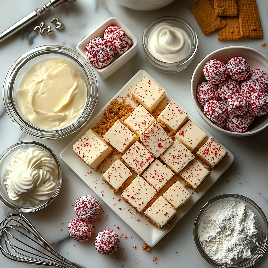 This No-Bake Christmas Mini Cheesecakes Recipe calls for simple, pantry-friendly ingredients that come together beautifully to create a festive flavor and texture balance. Each ingredient plays an important role, from crunchy crust to fluffy filling to that iconic peppermint finish.