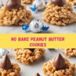 Delicious, no-bake Peanut Butter Kiss Cookies combining a sweet peanut butter mixture with crispy Rice Krispies and topped with iconic Hershey Kisses. Perfect for quick treats or parties without needing an oven.