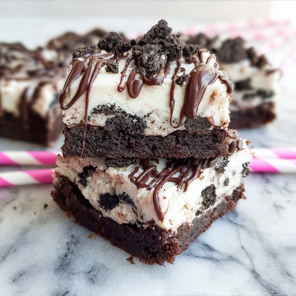 For an eye-catching presentation, add a few whole Oreo halves or swirl whipped cream on each bar. Fresh berries like raspberries or strawberries can also provide a lovely color contrast and a fresh burst to balance the rich flavors.