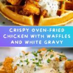 Stack your waffles with the oven-fried chicken on top, then generously ladle the white gravy over both. Serve on a large platter for communal sharing, or create individual stacked plates garnished with scallions and a drizzle of hot honey for a sweet and spicy punch. Presentation with a sprinkle of chopped herbs or microgreens gives a refined, restaurant-quality look to this hearty comfort meal.