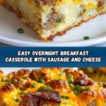 A hearty and convenient Overnight Breakfast Casserole featuring savory sausage, cubes of bread soaked in an egg and milk mixture, layered with cheddar cheese and optional veggies. Prepared the night before and baked in the morning, it makes a perfect make-ahead breakfast or brunch dish for families or gatherings.