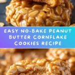 Delicious no-bake Peanut Butter Cornflake Cookies that combine the rich creaminess of peanut butter with the sweet crunch of honey-coated cornflakes. These easy-to-make clusters require minimal ingredients and no oven time, perfect for a quick, satisfying treat.