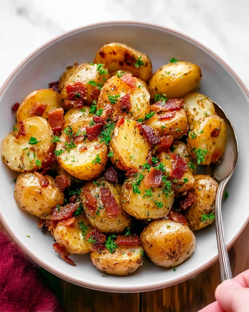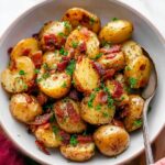 - Add Optional Toppings: After roasting, sprinkle chopped cooked turkey bacon and freshly chopped parsley over the potatoes for added flavor and garnish, if desired.