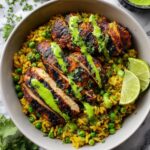 This Peruvian Chicken Rice is a flavorful, one-pan dish combining tender seasoned chicken, aromatic spices, and fluffy rice with vibrant vegetables. Infused with cumin, paprika, and turmeric, and garnished with fresh cilantro and lime wedges, it offers a satisfying taste of traditional Peruvian cuisine that’s quick and easy to prepare.