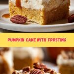 A moist and flavorful pumpkin cake topped with creamy maple-infused cream cheese frosting and crunchy pecans, perfect for autumn gatherings and cozy celebrations.