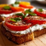 This Ricotta & Tomato Sourdough Toast recipe offers a delightful combination of creamy whipped ricotta, sweet blistered cherry tomatoes, and fresh basil on toasted sourdough bread. Perfect for a quick and elegant breakfast or light lunch, this dish balances creamy, tangy, and fresh flavors with a satisfying crunch and aroma.