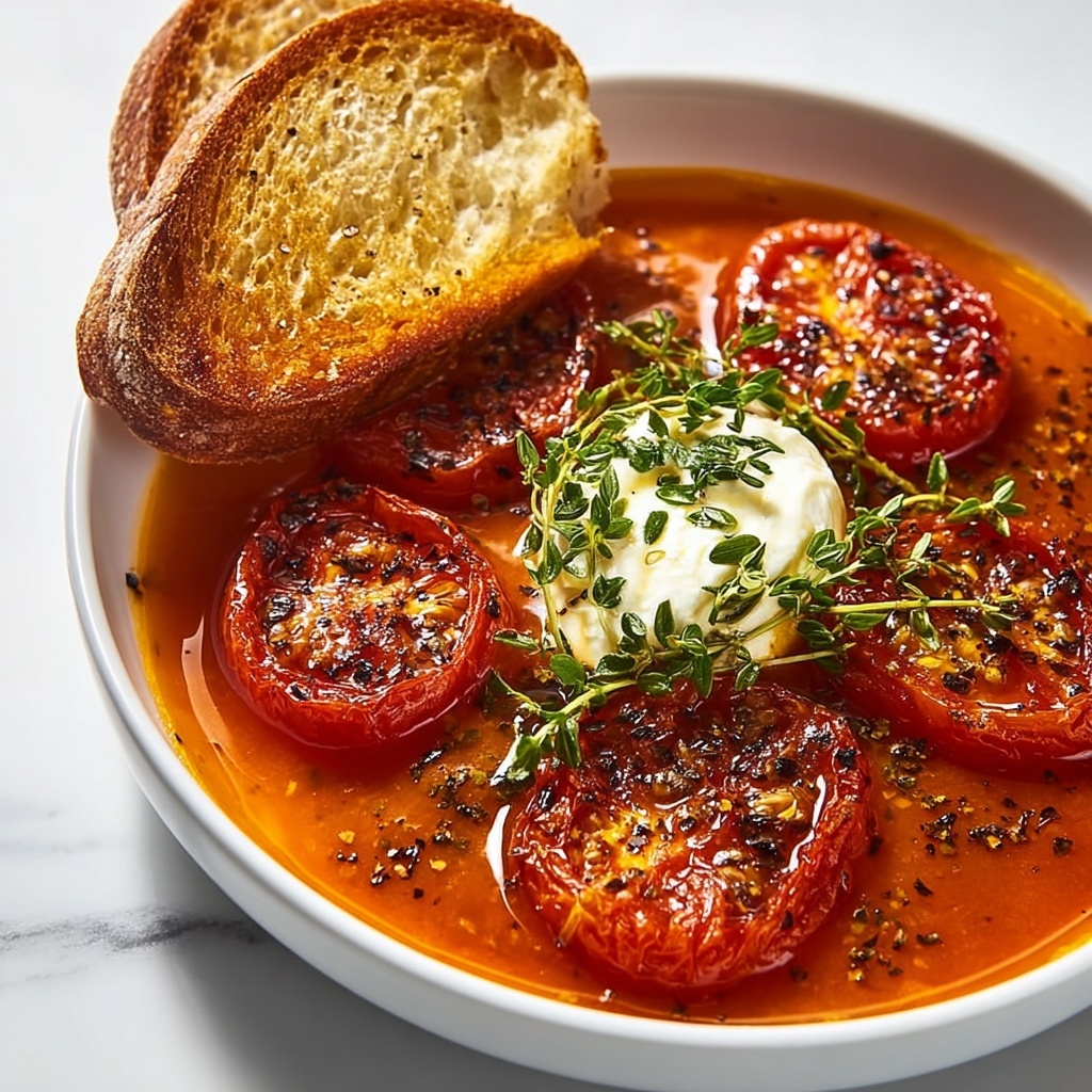 This Roast Tomato Soup recipe offers a comforting and flavorful dish made by roasting fresh tomatoes, onions, and garlic to develop deep, rich flavors. Blended smooth and simmered with broth, the soup is finished with fresh basil and a touch of cream for added richness. Perfect for a cozy meal served alongside crusty bread.