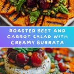 A vibrant and flavorful Roasted Beets & Carrots salad topped with creamy burrata cheese, toasted pine nuts, and a tangy balsamic Dijon dressing. This dish perfectly balances the earthiness of roasted root vegetables with the rich creaminess of burrata, enhanced by a light, refreshing dressing and fresh herbs, making it an ideal appetizer or side for any meal.