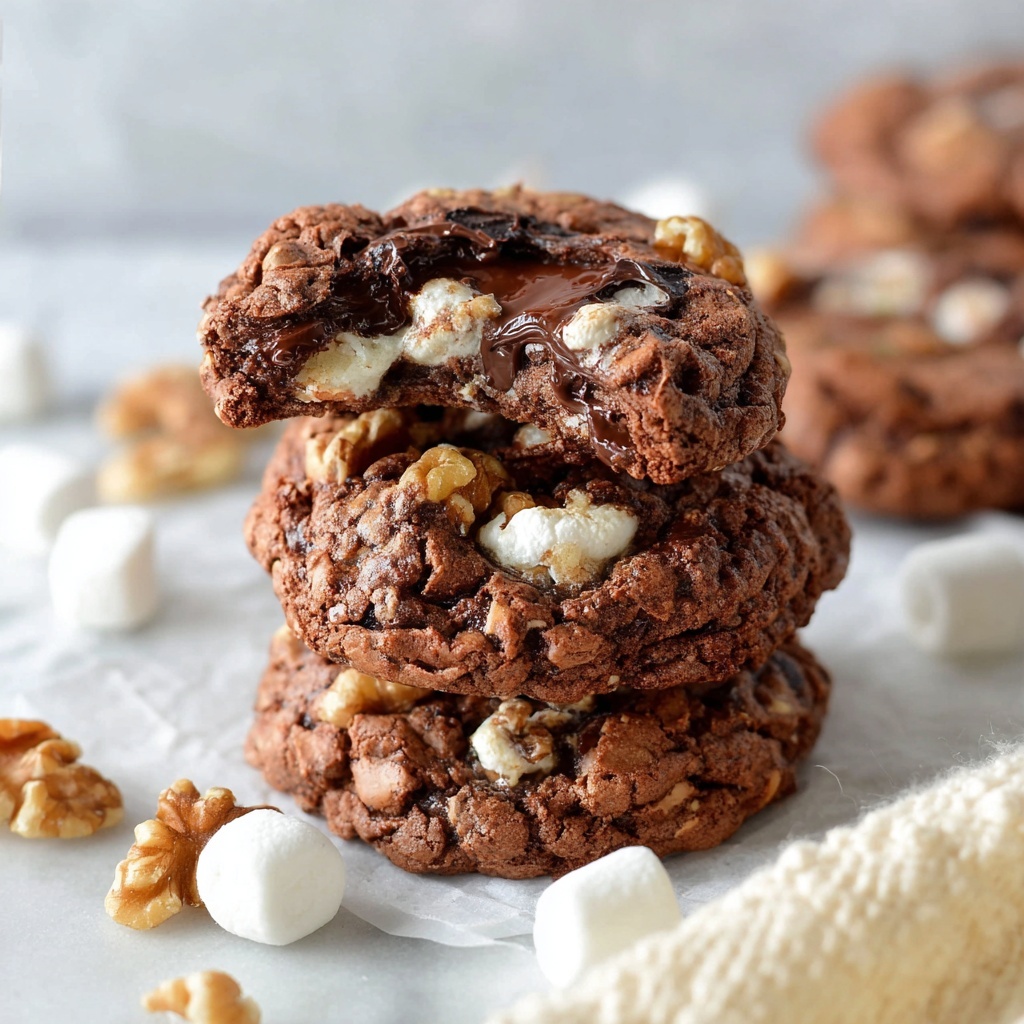 If you want to dress up your Rocky Road Cookies Recipe for a party or a cozy afternoon treat, try topping them with a light dusting of powdered sugar or a drizzle of melted white chocolate. Both add visual appeal and an extra layer of flavor that complements the rich chocolate and marshmallow interior.