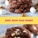 These Rocky Road Cookies are rich, gooey, and packed with chocolate chips, mini marshmallows, and crunchy walnuts. With a unique twist of stuffing marshmallows in the center, they offer a delightful soft and chewy texture combined with a nutty crunch, perfect for chocolate lovers looking for an irresistible treat.