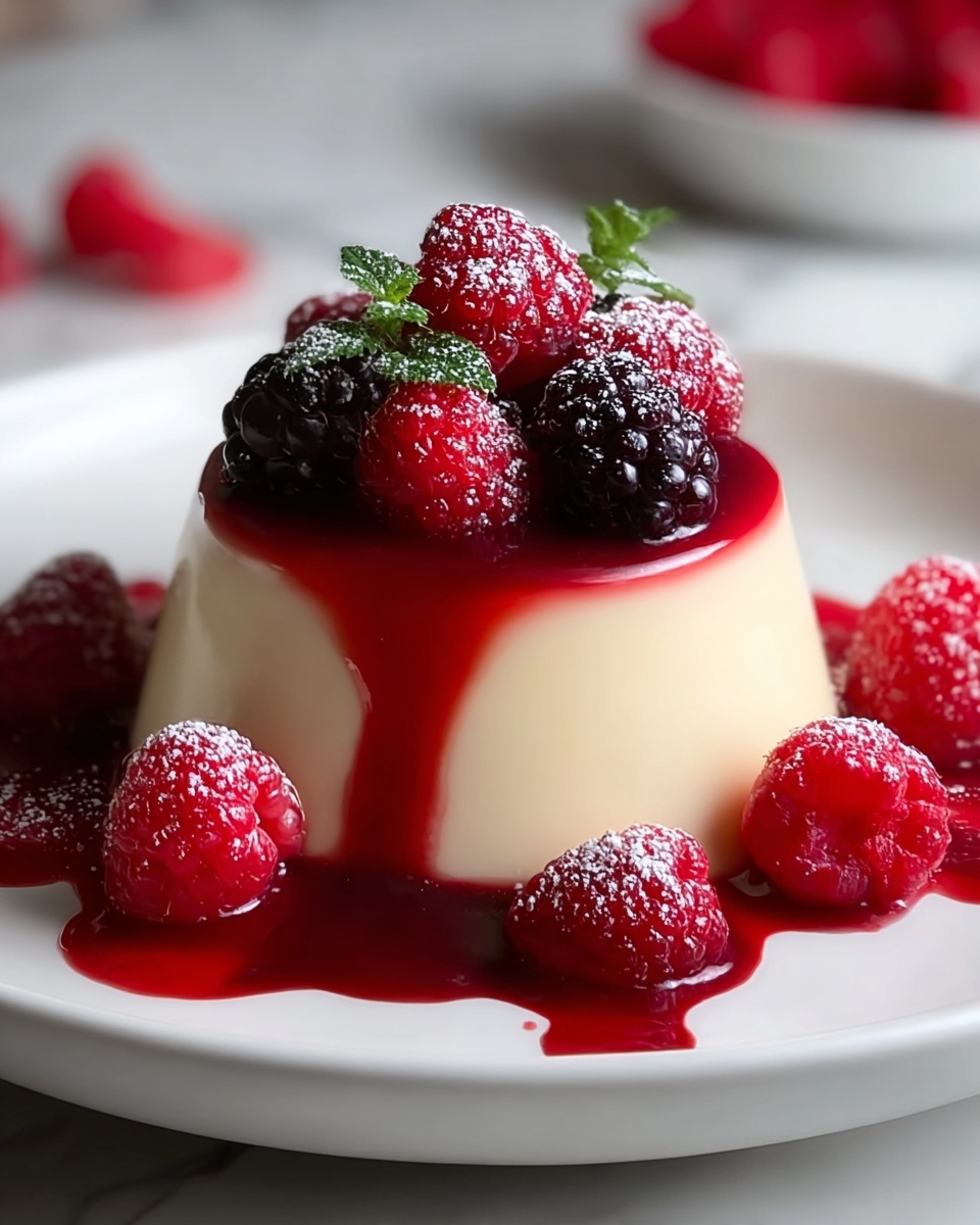 Pair this panna cotta with light, crisp accompaniments like a fresh arugula salad drizzled with lemon vinaigrette or thin almond biscotti for crunch. These sides keep the palate refreshed and don’t compete with the delicate flavors, making sure the rose water raspberry panna cotta stays the star of the show.