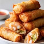 Delicious homemade shrimp egg rolls packed with sautéed vegetables, vermicelli noodles, and tender shrimp, wrapped in crispy, golden egg roll wrappers. Perfect as an appetizer or snack, these egg rolls are fried to perfection for a satisfying crunch and flavorful bite.