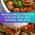 Sizzling Garlic Chicken Stir-Fry with Colorful Peppers and Steamed Rice Recipe