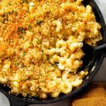 8. Prepare topping: In a separate bowl, mix the Panko breadcrumbs with ¼ cup melted butter until evenly coated. Sprinkle this breadcrumb mixture evenly over the mac and cheese in the skillet.