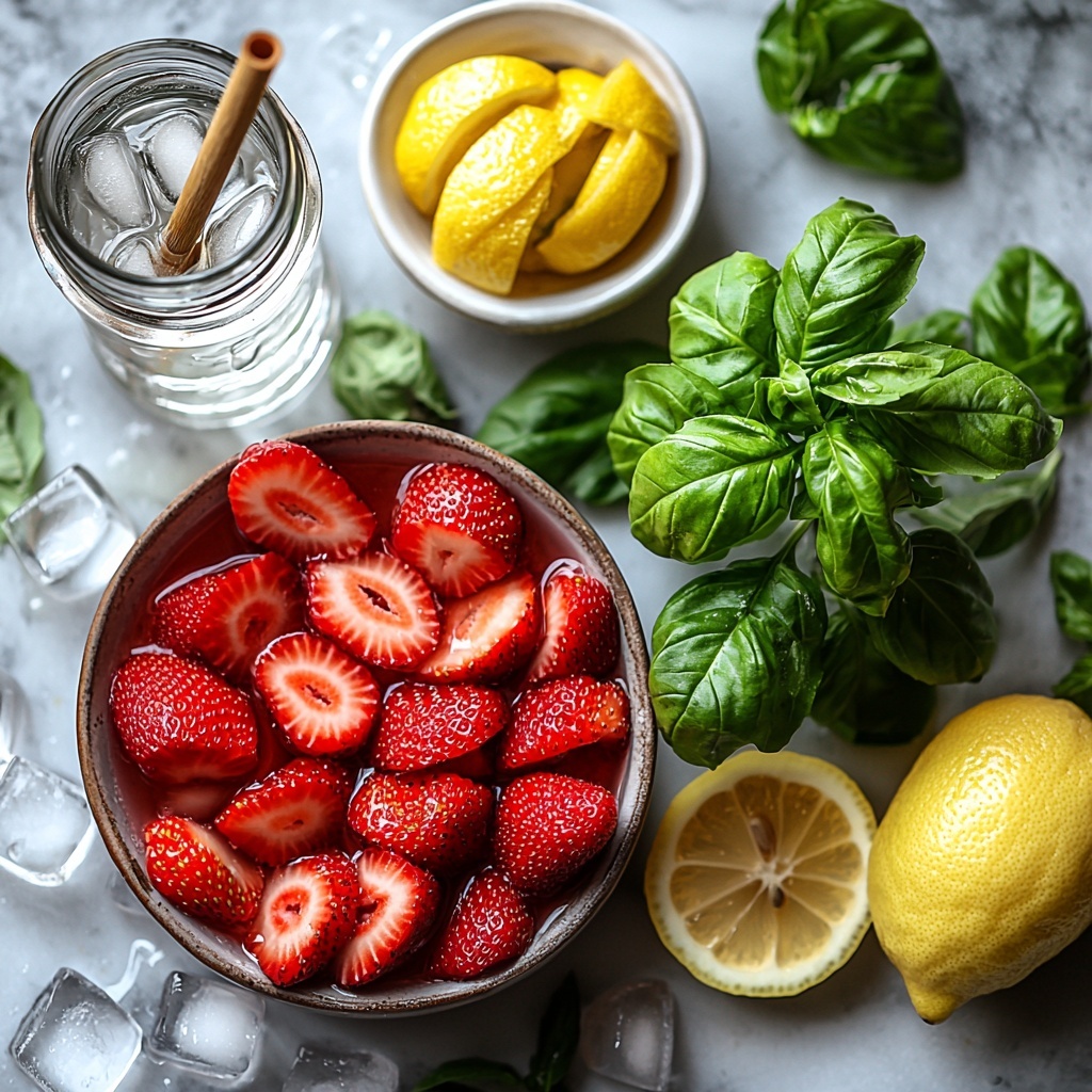 The magic in this Summer Refreshing Strawberry Basil Smash Cocktail Recipe lies in its simple yet thoughtfully chosen ingredients. Each one brings something unique to the party, from vibrant color to refreshing zest, creating a harmonious blend that’s both visually stunning and delicious.