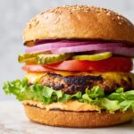 - Assemble the burgers. Spread the prepared sauce onto each bun, add the cooked burger patty, and layer on your choice of toppings such as lettuce, tomato, avocado, and red onion. Serve immediately and enjoy.