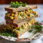 Spread a generous layer of your creamy veggie mayo on a slice of bread. Don’t be shy — the filling is the star here! Top with another slice to complete the sandwich. Repeat to prepare all three sandwiches. For a neat and inviting presentation, trimming the edges and cutting into triangles or squares is a charming touch that also makes them easier to handle.