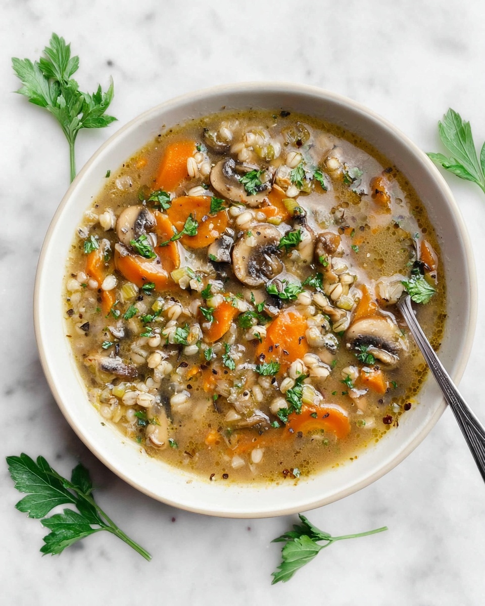 The beauty of this soup lies in its simplicity and the quality of each ingredient. Each element plays a key role in building layers of flavor and creating the perfect texture, from the tender barley to the hearty mushrooms and fragrant herbs.