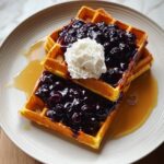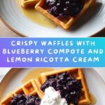 Delicious homemade waffles served with a fresh blueberry compote and a tangy lemon ricotta cream, perfect for a delightful breakfast or brunch treat.