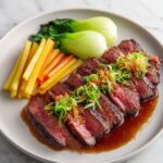 This Wafu Roast Beef with Dashi-Soy Sauce and Daikon Recipe pairs perfectly with steamed sushi rice or cold soba noodles, which soak up the rich sauce beautifully without overwhelming the palate. Light vegetable pickles or a crisp Japanese cucumber salad also make excellent sides, adding brightness and balancing the heartiness of the beef.