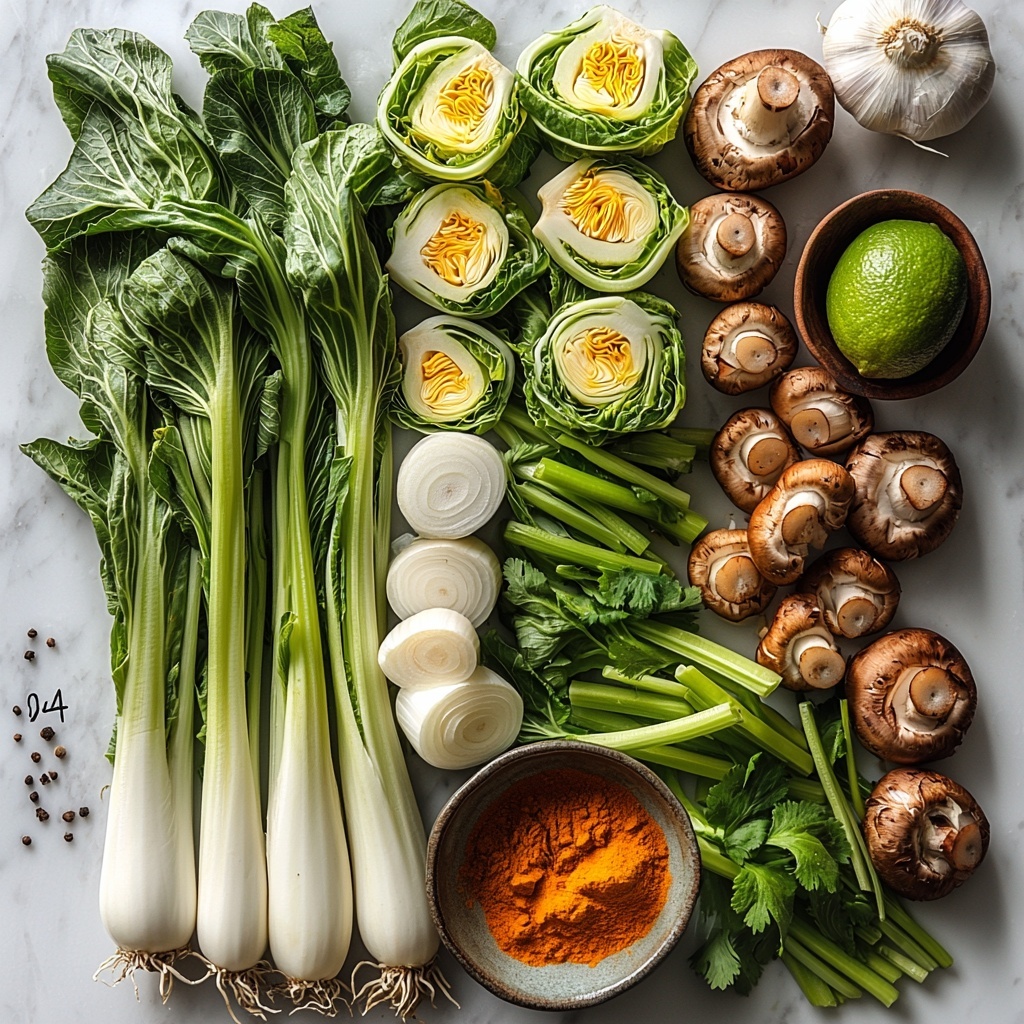 - Baby bok choy (4, chopped): Provides crisp texture and mild bitterness that complements the rich broth.